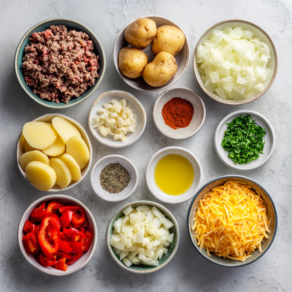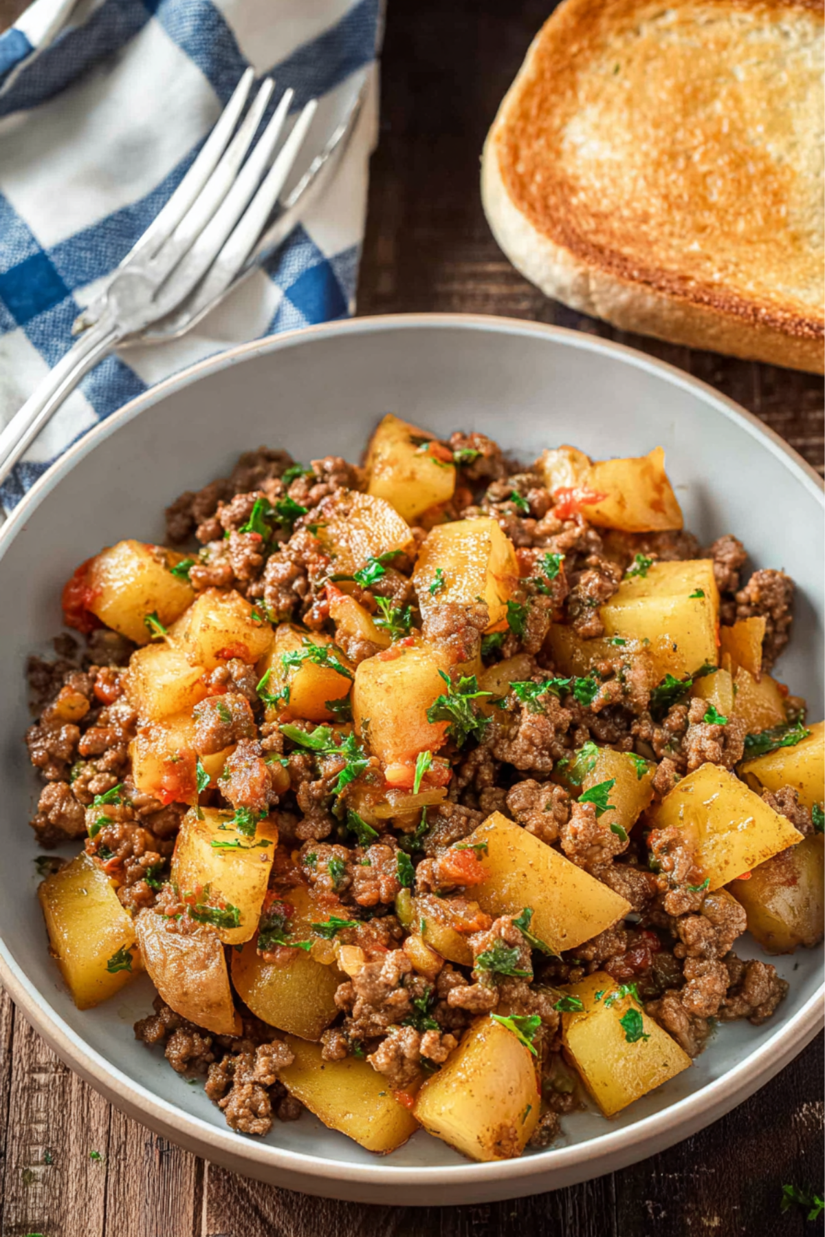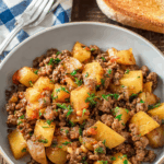 A hearty one-pan meal featuring tender ground beef, golden potatoes, and flavorful seasonings all cooked together to create a cozy, family-favorite dinner.