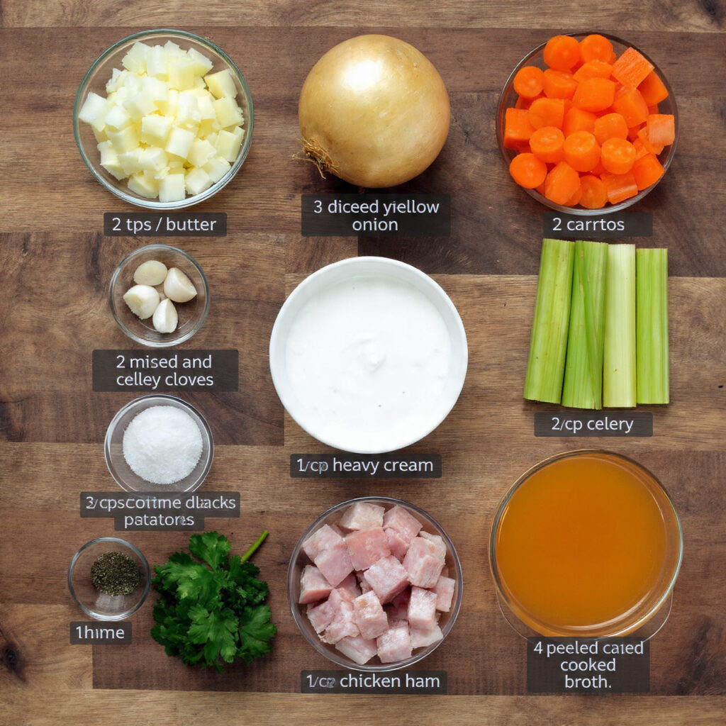 Ham: The star of the show. It brings smoky, salty flavor that infuses the whole soup. Use a bone-in leftover ham if you have it, or thick-cut deli ham in a pinch.