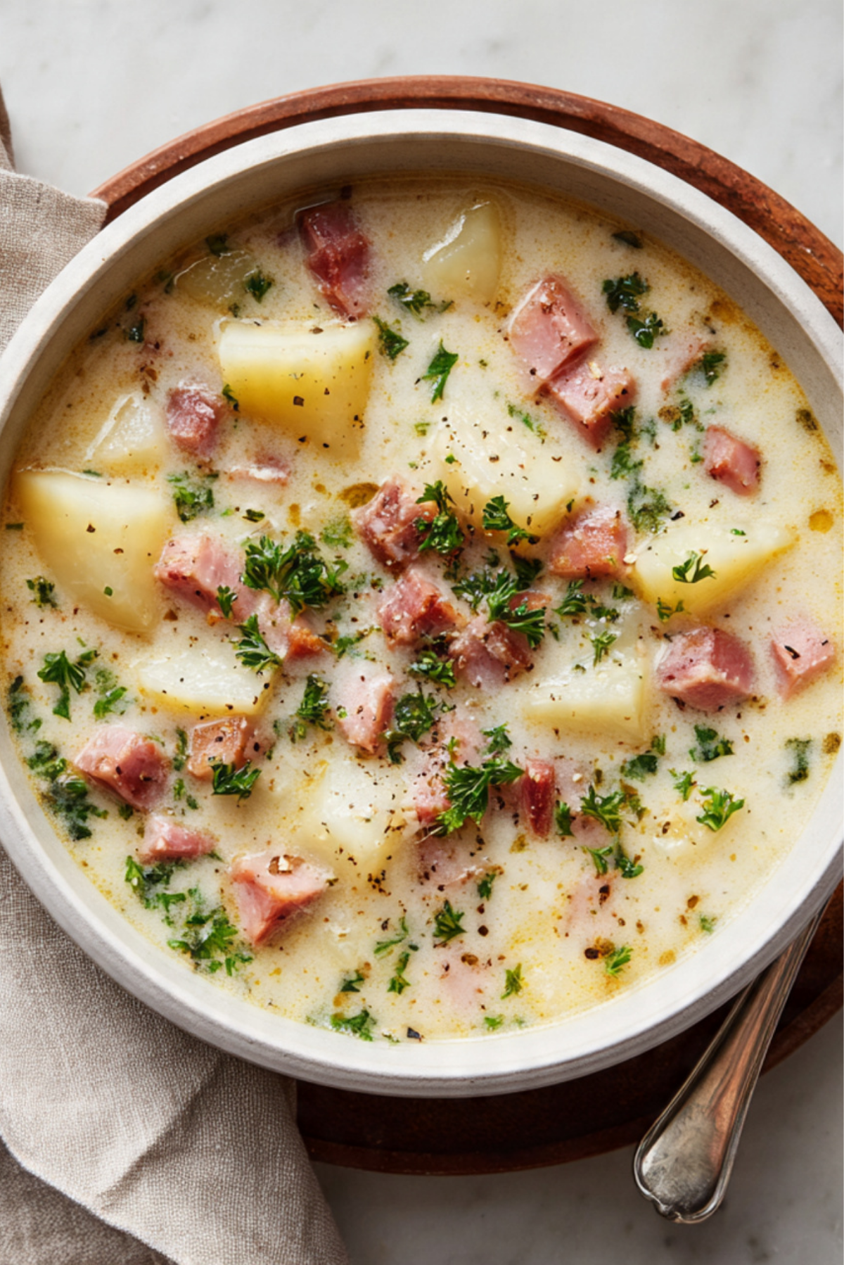 Ham and potato soup finds its roots in classic American home cooking, especially in the South and Midwest, where hearty meals are a way of life. The recipe draws inspiration from German and Irish potato-based soups, blending the rich flavor of cured pork with the velvety texture of potatoes. Originally made to use up leftover ham from holiday meals, it became a comfort food staple because of its ease and flavor. This version carries forward that tradition, honoring its humble beginnings with a bit of modern creamy flair.