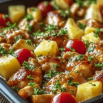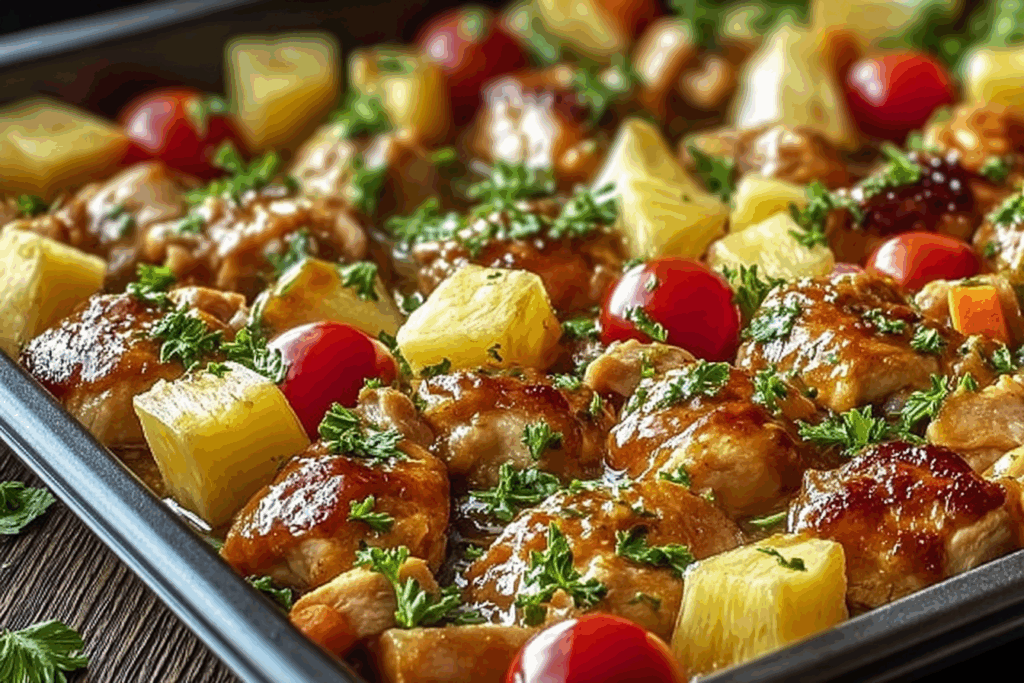This recipe was born out of those weeknights when I wanted something tropical but didn’t have time for complicated prep. I remember tossing everything together on one pan, thinking it might just be “fine,” but it came out absolutely perfect. The sweet glaze caramelized beautifully, the pineapple juices soaked into the chicken, and the kitchen smelled like a tiny island escape.
