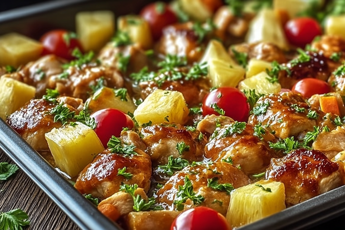 This recipe was born out of those weeknights when I wanted something tropical but didn’t have time for complicated prep. I remember tossing everything together on one pan, thinking it might just be “fine,” but it came out absolutely perfect. The sweet glaze caramelized beautifully, the pineapple juices soaked into the chicken, and the kitchen smelled like a tiny island escape.