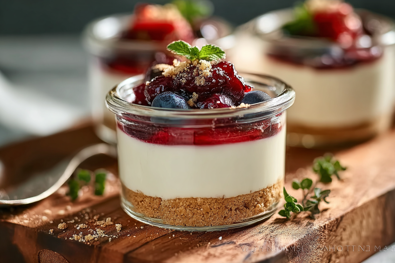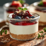 Creamy, velvety cheesecake jars boosted with protein from cottage cheese, Greek yogurt, and vanilla protein powder, finished with fresh berries for a dessert that feels indulgent yet nourishing.