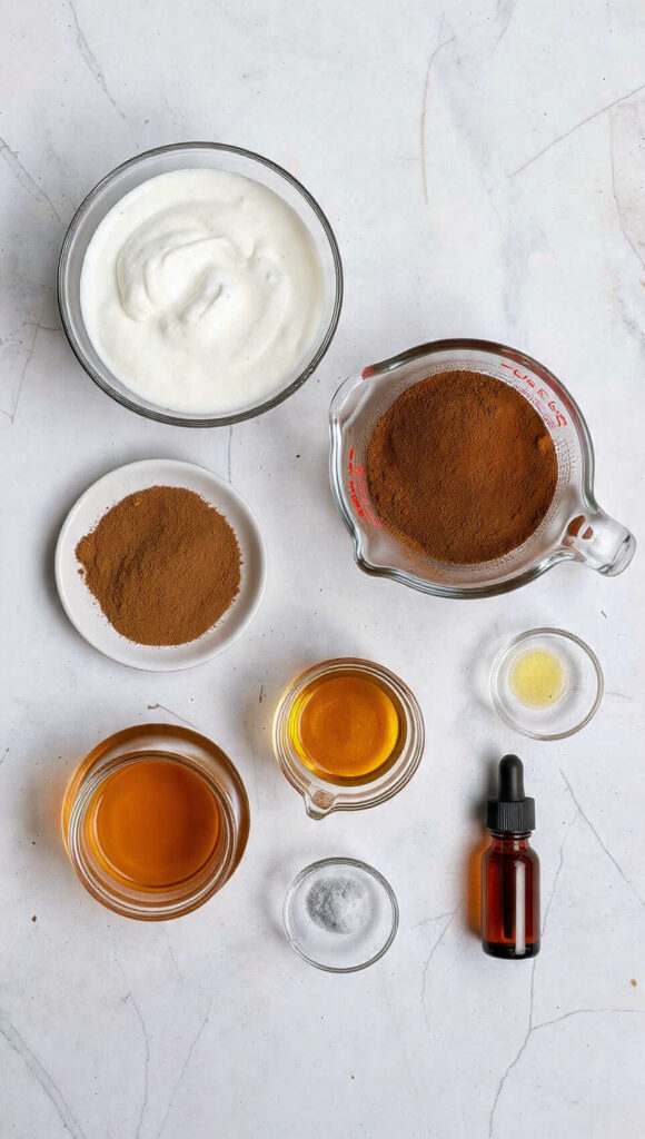 - Combine Ingredients: In a mixing bowl, add Greek yogurt, chocolate protein powder, cocoa powder, honey or maple syrup, vanilla extract, and salt.
