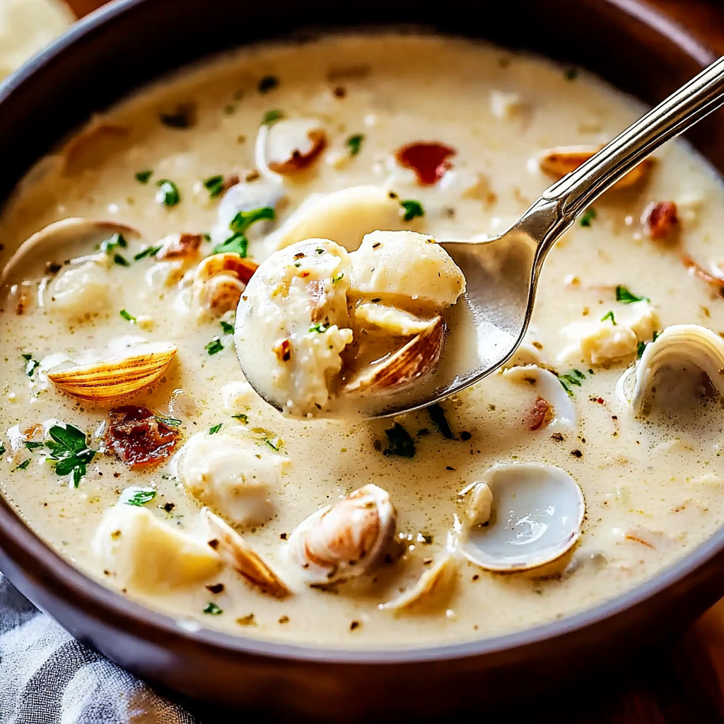 Homemade Clam Chowder is a rich and creamy soup loaded with tender clams, potatoes, and savory bacon. This classic New England-style chowder offers a comforting, hearty meal perfect for chilly days.