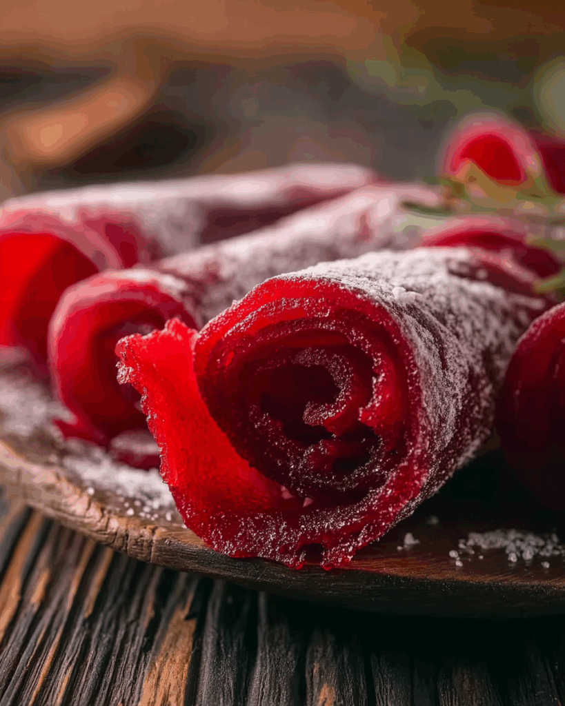 Chewy, glossy homemade fruit leather with a playful Kool-Aid tang and bright strawberry sweetness, easy to prep and perfect for make-ahead snacking.