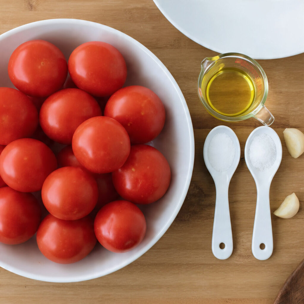 - Salt: 1 teaspoon Enhances the natural sweetness and flavor of the tomatoes.