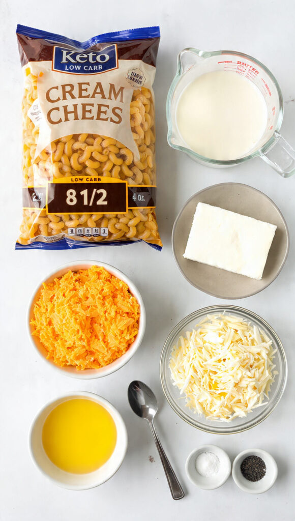 - Low Carb Elbow Pasta: 8 ounces, the base that mimics traditional macaroni.