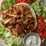 Warm the pita, pile the chicken high, and drizzle sauce generously for that irresistible look.
