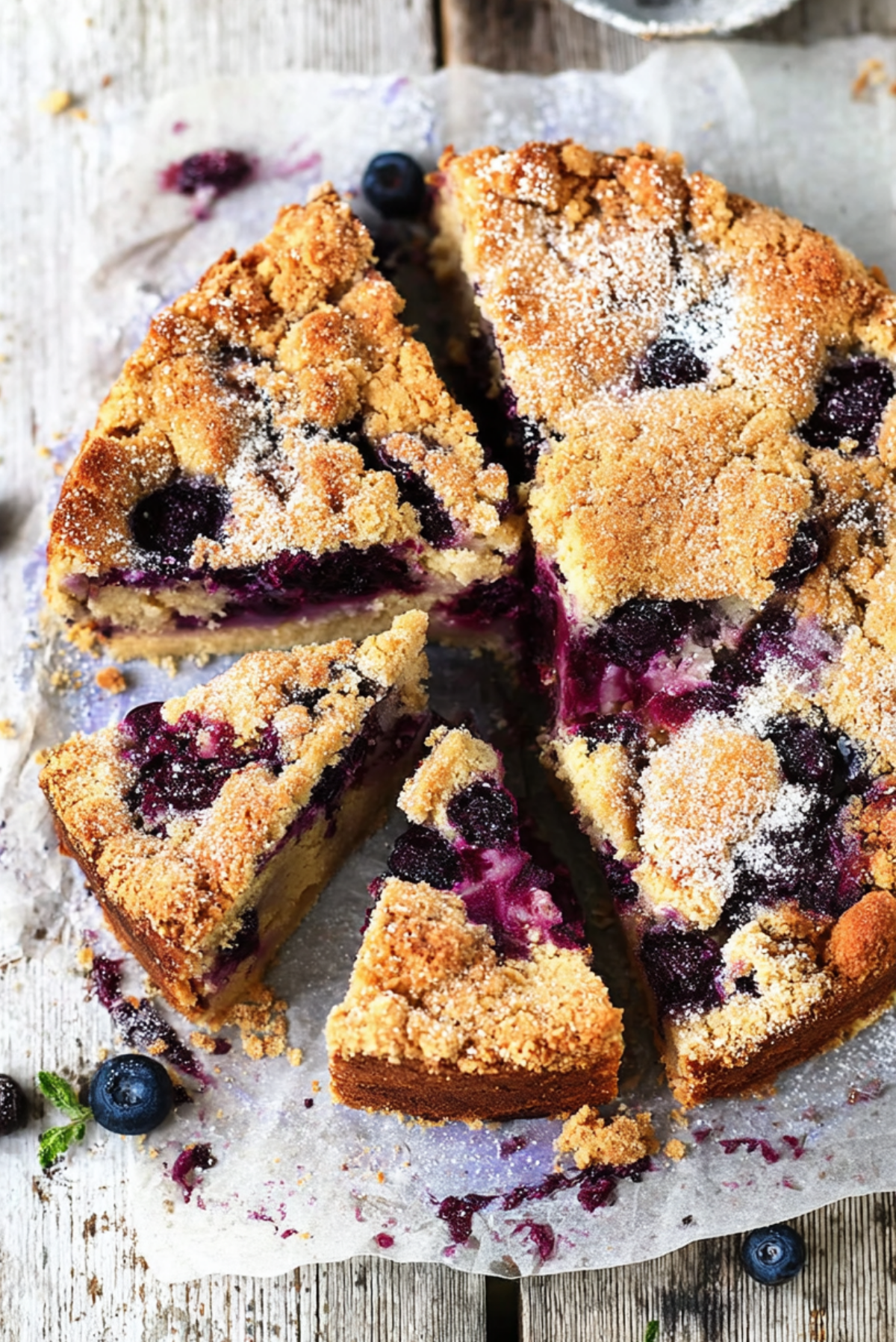 Each bite of this crumb cake delivers a tender, buttery crumb infused with lemony brightness, interrupted by bursts of juicy blueberries. The crumb topping adds a sweet crunch that contrasts beautifully with the soft cake underneath. The flavor deepens as it cools, with the tang of lemon becoming more pronounced.