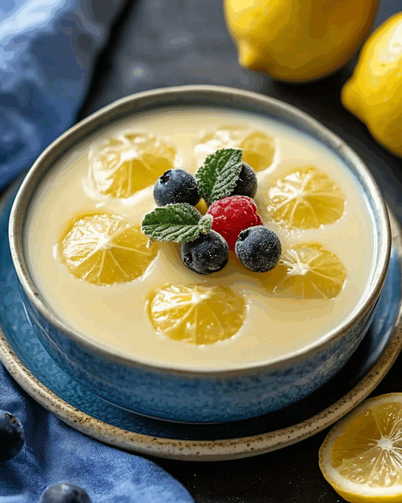 A creamy and tangy British dessert made with just three ingredients: cream, sugar, and lemon. It’s a simple yet indulgent treat with a smooth texture and refreshing citrus flavor.
