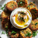 Golden, crispy lentil fritters served with creamy labne, a comforting and flavorful dish perfect as an appetizer, light meal, or part of a shared spread.