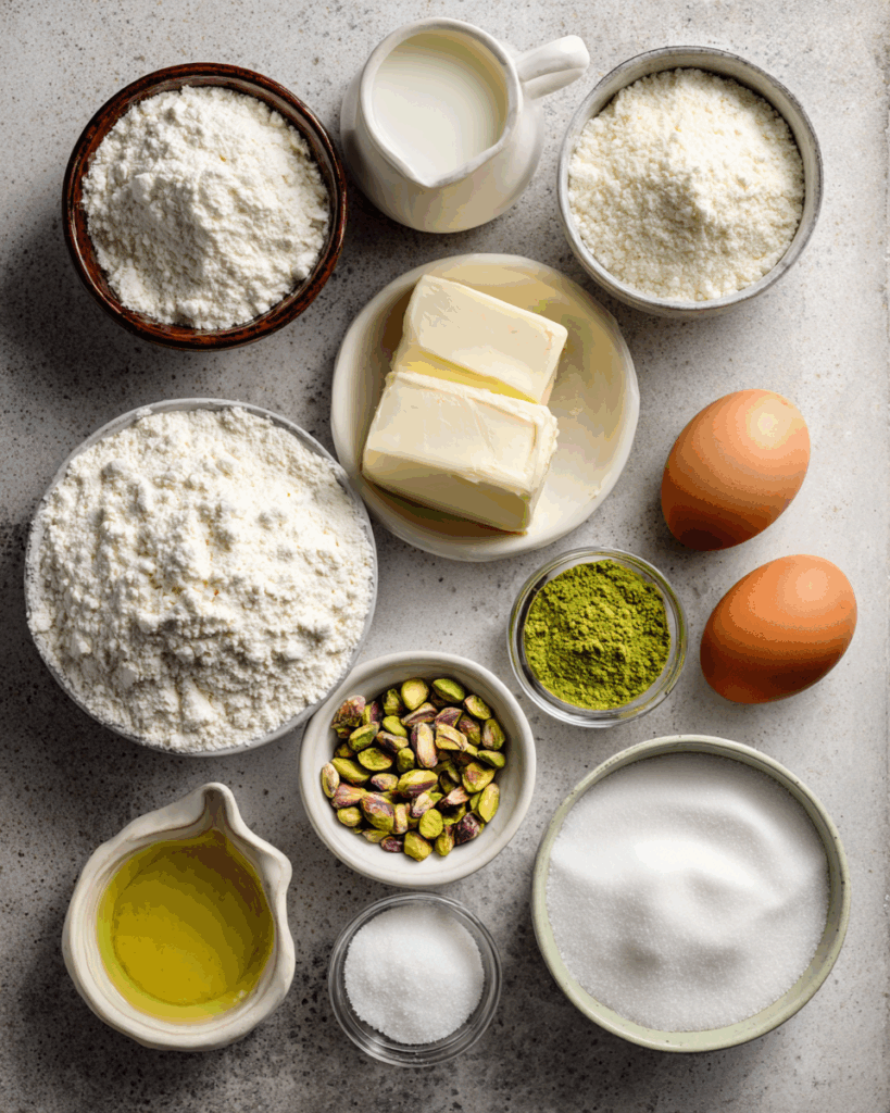 - Pistachios (shelled and finely ground): ½ cup, the heart of the flavor.
