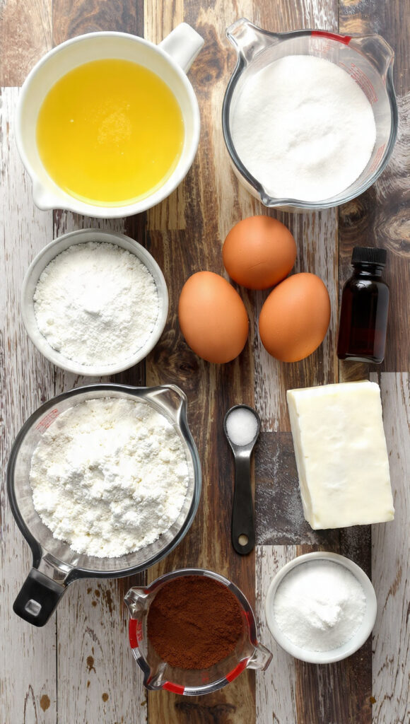- Unsweetened Cocoa Powder: ¾ cup, creates deep chocolate flavor.