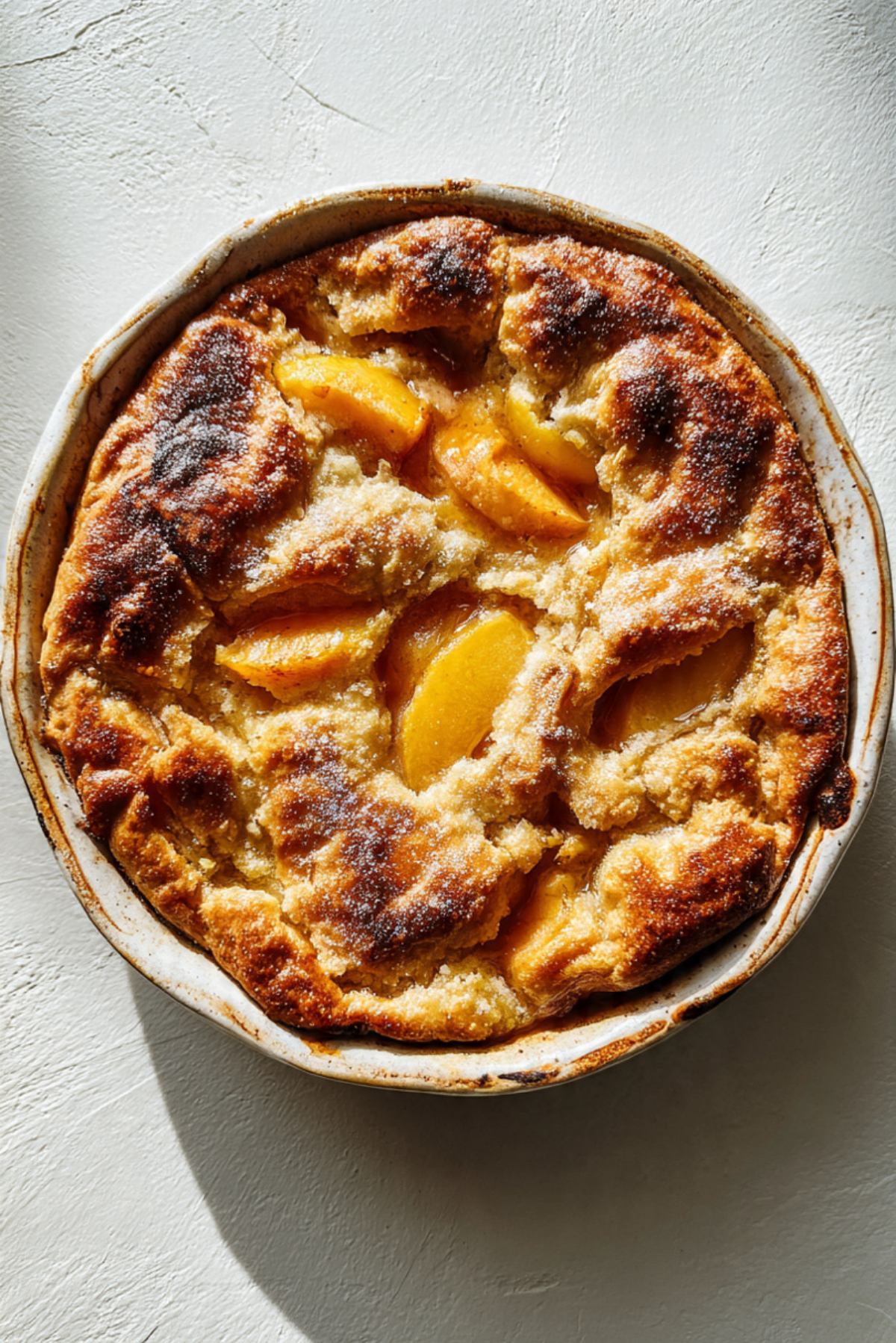 Peaches: When baked, peaches become soft, jammy, and intensely fragrant, forming the soul of this dessert.