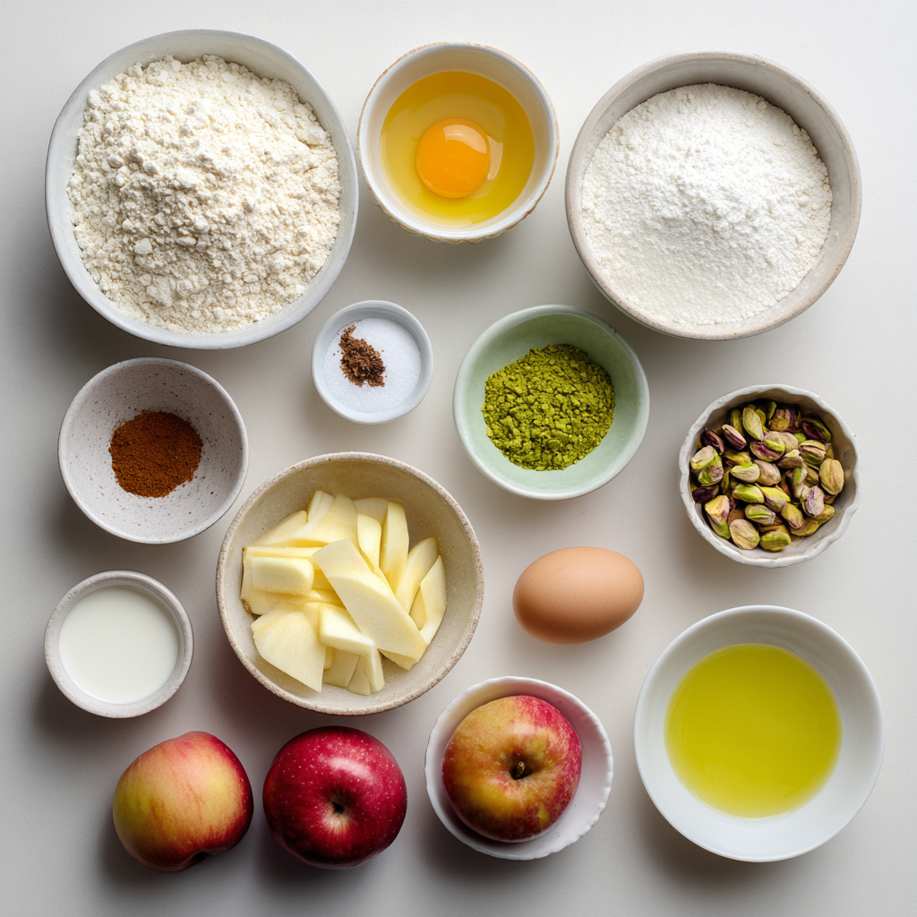 Ingredients in One-bowl Apple Yogurt Cake with Pistachios