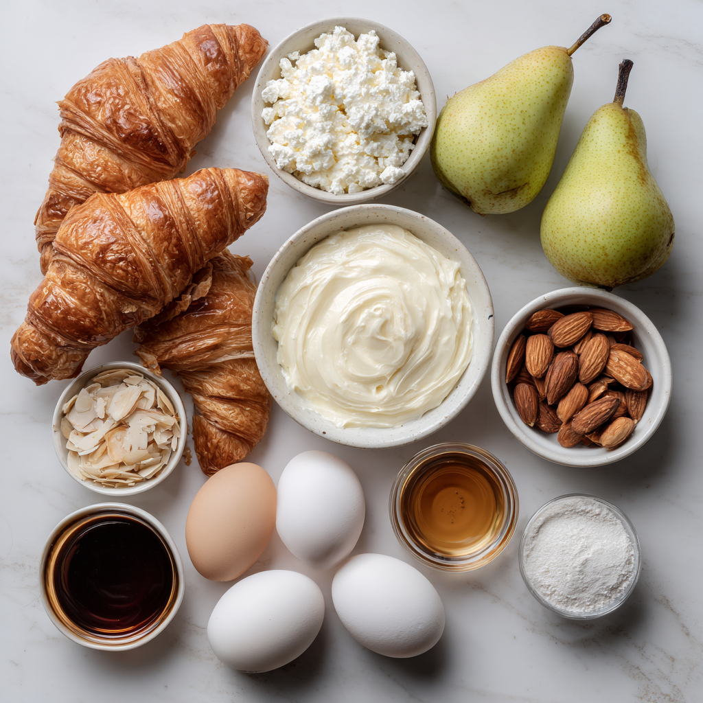 Ingredients in Overnight Pear and Ricotta Croissant French Toast with Almonds