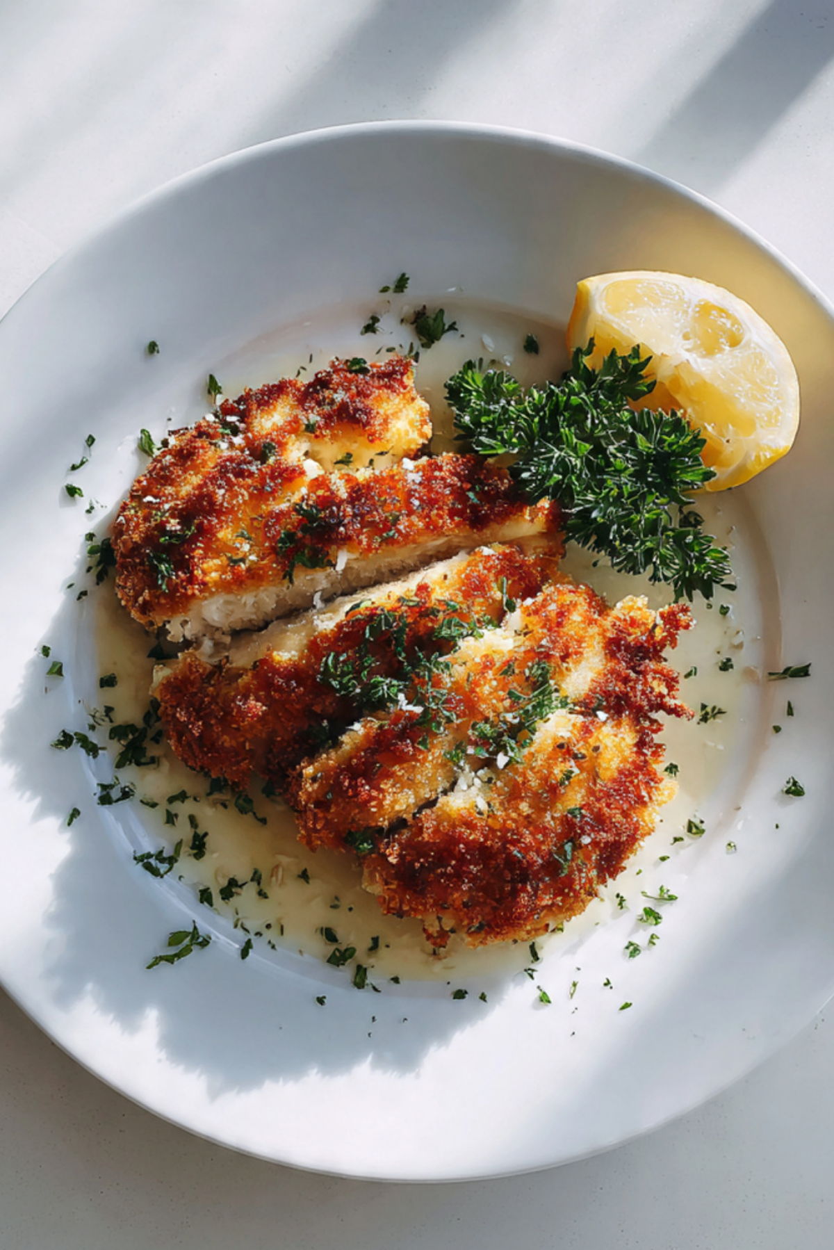 The magic is in the contrast. The crust is golden and audibly crispy, while the chicken inside is moist, tender, and savory. Parmesan adds a salty richness, while the garlic and herbs deepen the overall flavor without stealing the spotlight. The result is comfort food with gourmet vibes.