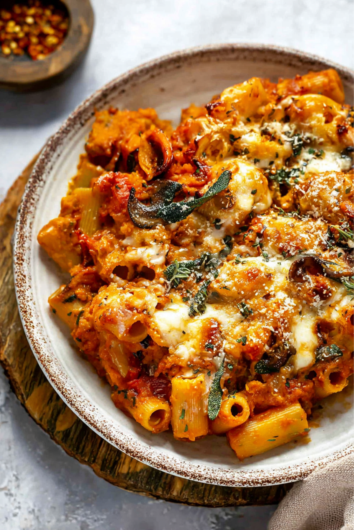 This pasta bake was born out of my love for cozy fall flavors mixed with the heartiness of a classic Italian-style dish. I remember making it one rainy weekend, the smell of roasted pumpkin filling the kitchen while the tomato sauce simmered away. The first bite was pure comfort, and from that moment on, it became one of those recipes that I always come back to when I need a little warmth on my plate.