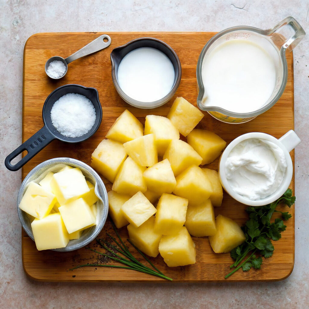 Yukon Gold Potatoes: The MVP of mash. Their thin skin, golden hue, and smooth texture make them ideal. They don’t need peeling if you like a rustic finish, and they balance starch with flavor like a pro.