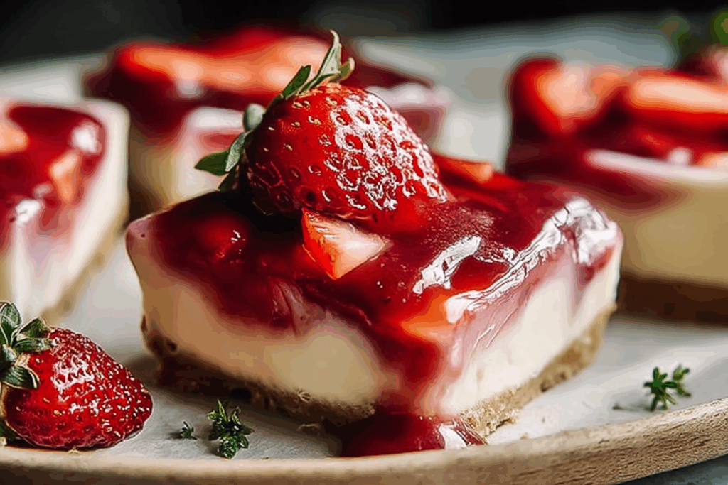 Creamy, tangy, and topped with a glossy strawberry layer, these Philadelphia Strawberry Cheesecake Bars are the perfect mix of indulgence and simplicity. Each bite melts in your mouth with the balance of buttery graham crust, smooth cheesecake, and sweet-tart strawberries.