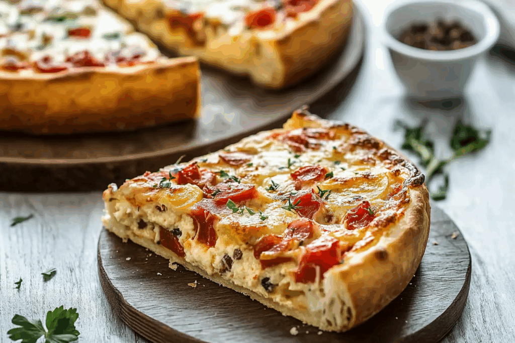 This recipe isn’t just a dish—it’s a celebration of flavors and tradition. The melty cheeses combine with savory meats for a filling that’s both indulgent and deeply satisfying. The buttery crust provides the perfect contrast, making each bite a balance of flaky and creamy. Whether you’re serving it for a special occasion or a cozy family dinner, this pie is sure to impress and delight.