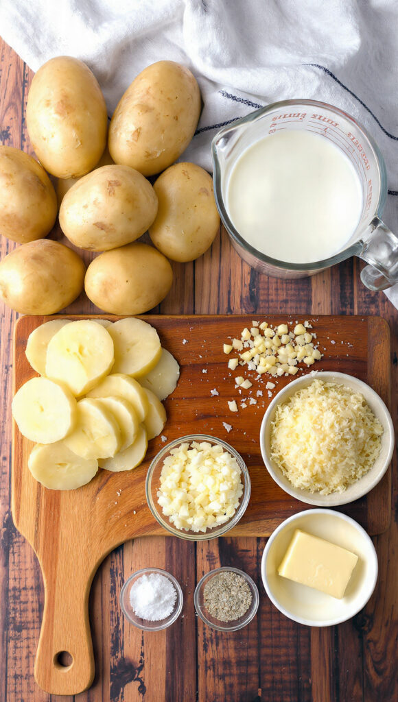 Potatoes: Their starch helps thicken the cream naturally as it bakes.