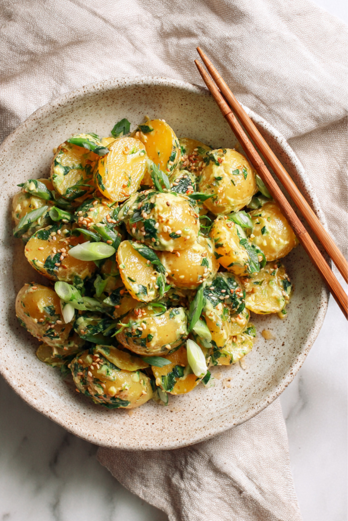 What sets this salad apart is its creamy texture paired with the bold umami hit from the miso. The potatoes are buttery and soft, the dressing is rich yet tangy, and the sesame oil adds a toasted depth that lingers on your palate. Every bite is a little savory, a little sweet, and a whole lot of delicious.