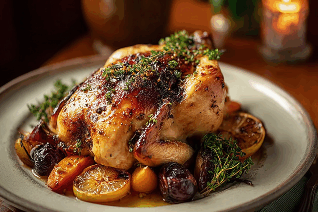 I first made this recipe after bringing home a jar of preserved lemons from a small Mediterranean market. Their salty, citrusy punch intrigued me, and I wanted to find a way to let them shine. The result was this beautiful roast chicken — tender and deeply flavorful, with each bite carrying a whisper of sunshine and spice. It became a family favorite almost instantly.