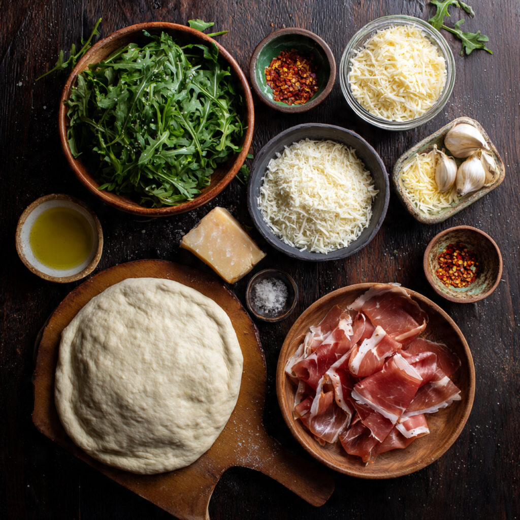 This recipe was born out of a craving for something both fancy and effortless. I remember tasting a similar pizza at a small trattoria tucked in a side street in Rome — the crust was blistered from a wood-fired oven, the prosciutto almost melted into the cheese, and the peppery arugula gave it a fresh lift. It stayed in my memory like a food postcard, and this version brings all that back, minus the plane ticket.