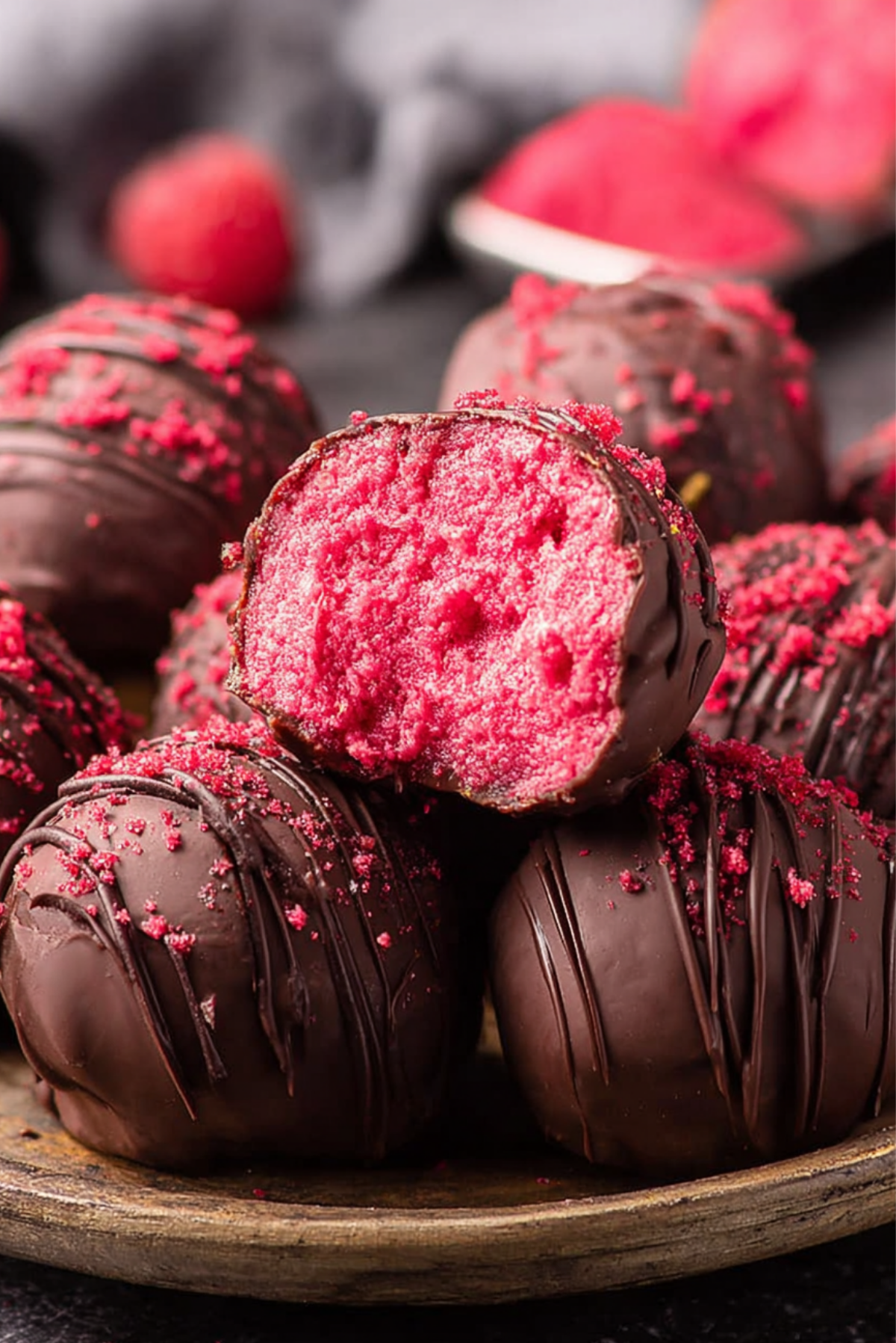 Raspberries: Their tartness cuts through the richness of the chocolate, giving the truffles a bright, fruity finish that keeps every bite exciting.