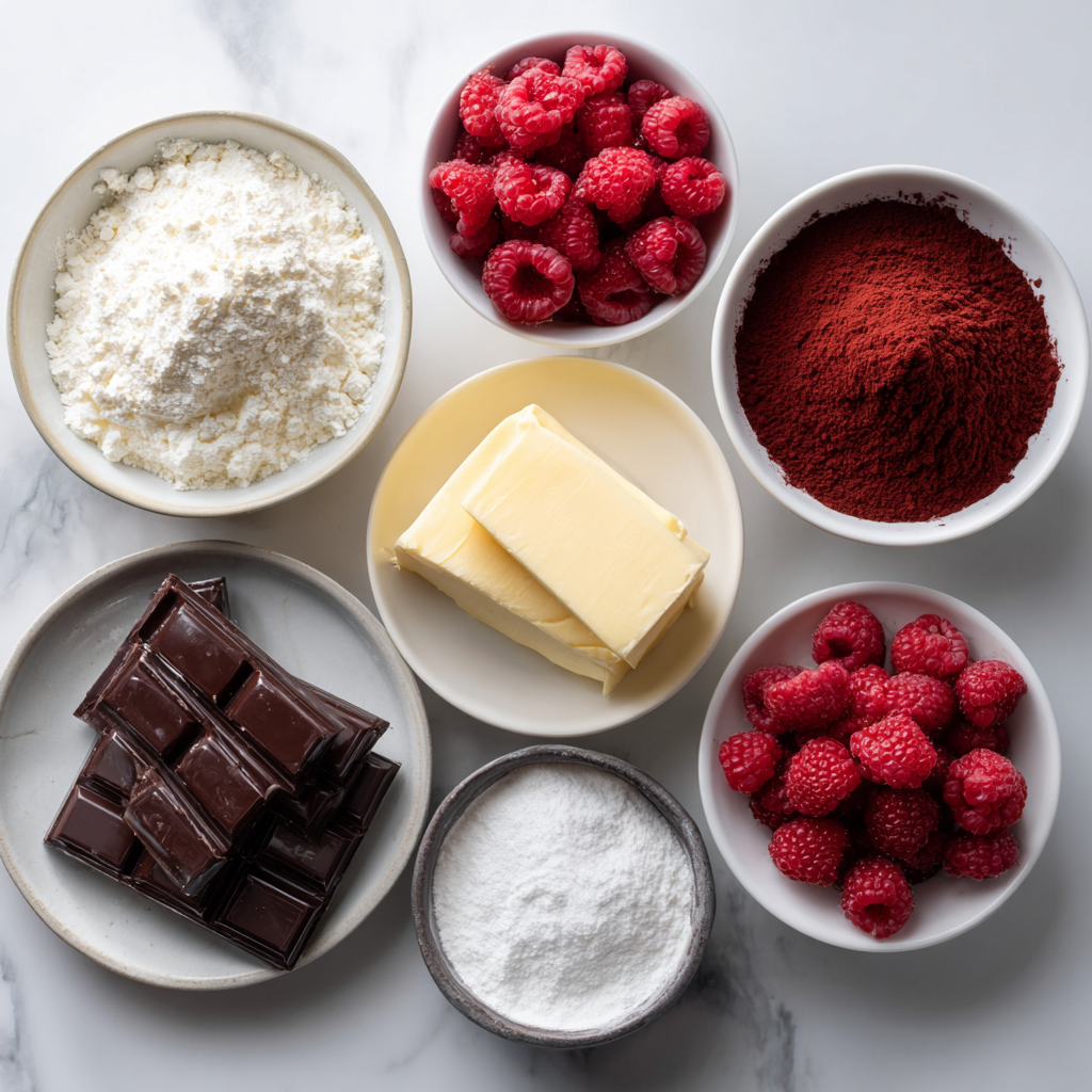 The magic of this recipe lies in the harmony between chocolate and raspberries. Each ingredient plays a role in balancing richness and brightness.