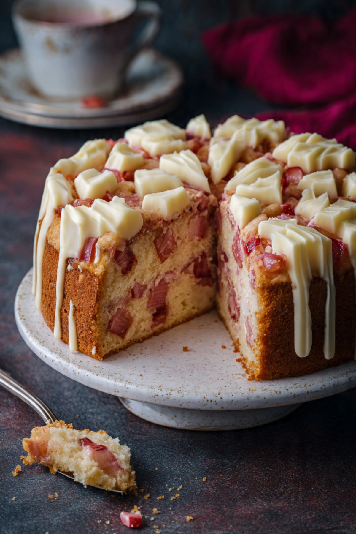 Rhubarb-strawberry cake with white chocolate