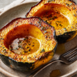 Roasted acorn squash is all about balance. The edges turn slightly crisp while the center stays tender and creamy. The flavor is naturally sweet and nutty, with deep caramel tones from the brown sugar and richness from the butter. A hint of cinnamon or herbs adds a cozy complexity that makes every bite satisfying.