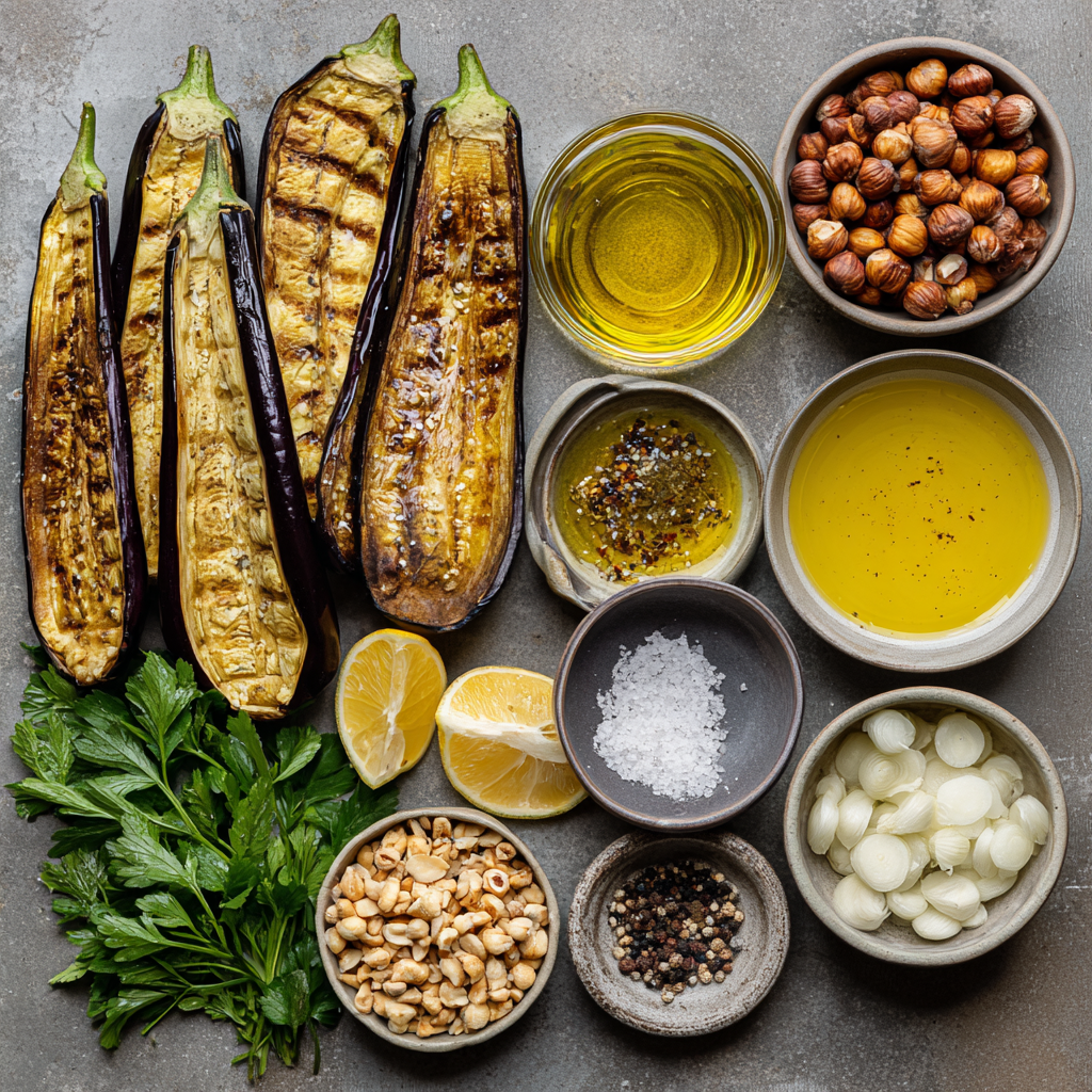 The moment you pull these roasted aubergines out of the oven, something magical happens. Their skins are blistered, their flesh soft and silky, and the aroma of nutty tahini rising in the kitchen feels like a warm embrace. Add the crunchy hazelnuts on top and you’ve got a dish that’s humble yet unforgettable. Whether you’re serving it as a side or letting it shine as the main event, this recipe invites you to slow down, savor, and enjoy every bite.
