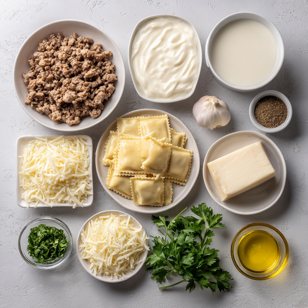 Ingredients in Sausage Alfredo Ravioli Lasagna