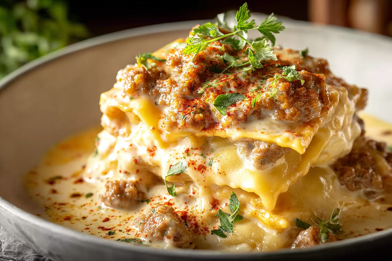 A creamy, cheesy fusion of lasagna and ravioli layered with savory Italian sausage and rich Alfredo sauce. This Sausage Alfredo Ravioli Lasagna is comfort food at its best—bubbly, golden, and irresistibly indulgent.
