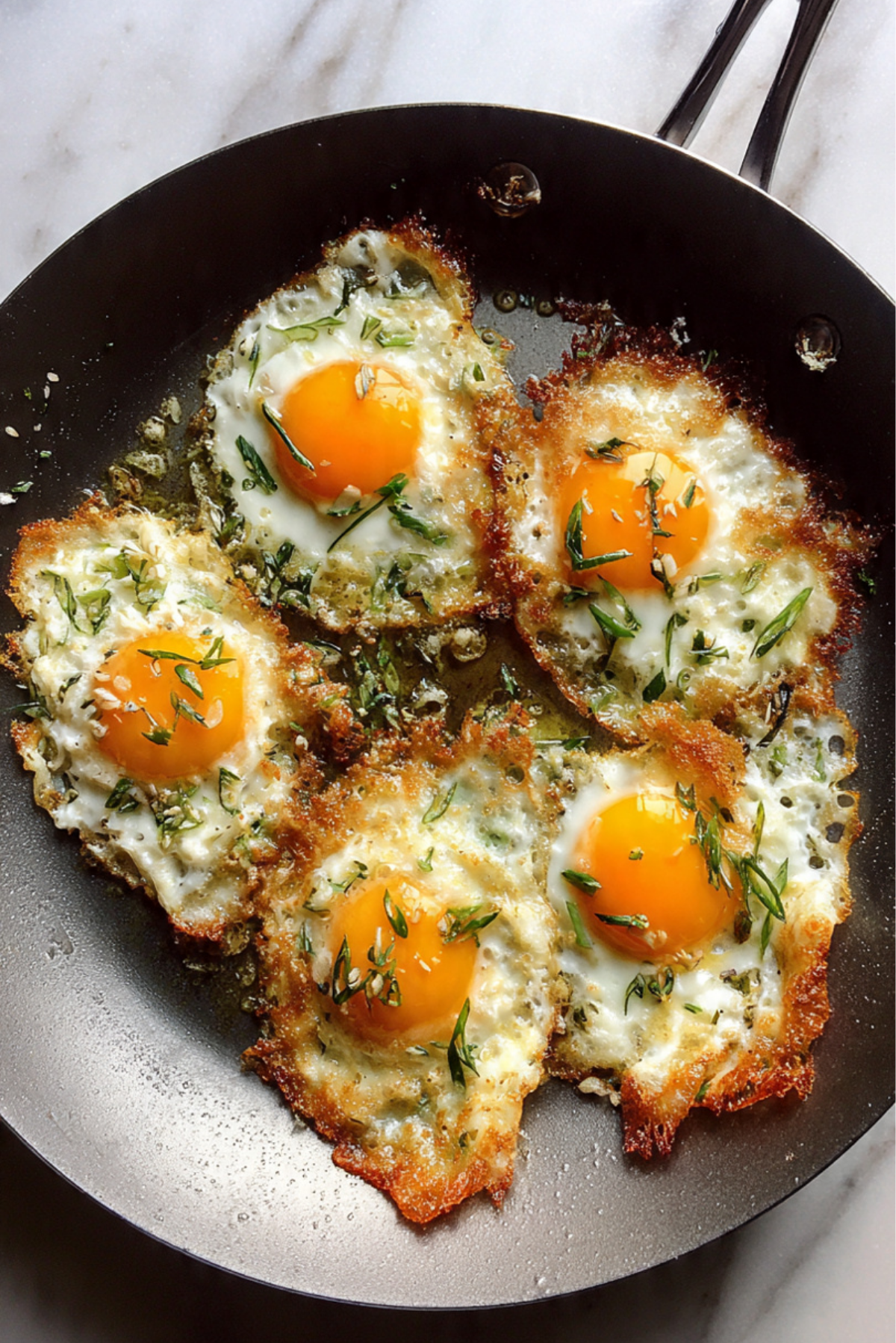 - Don’t overcrowd the pan: Give each egg room to crisp up beautifully.