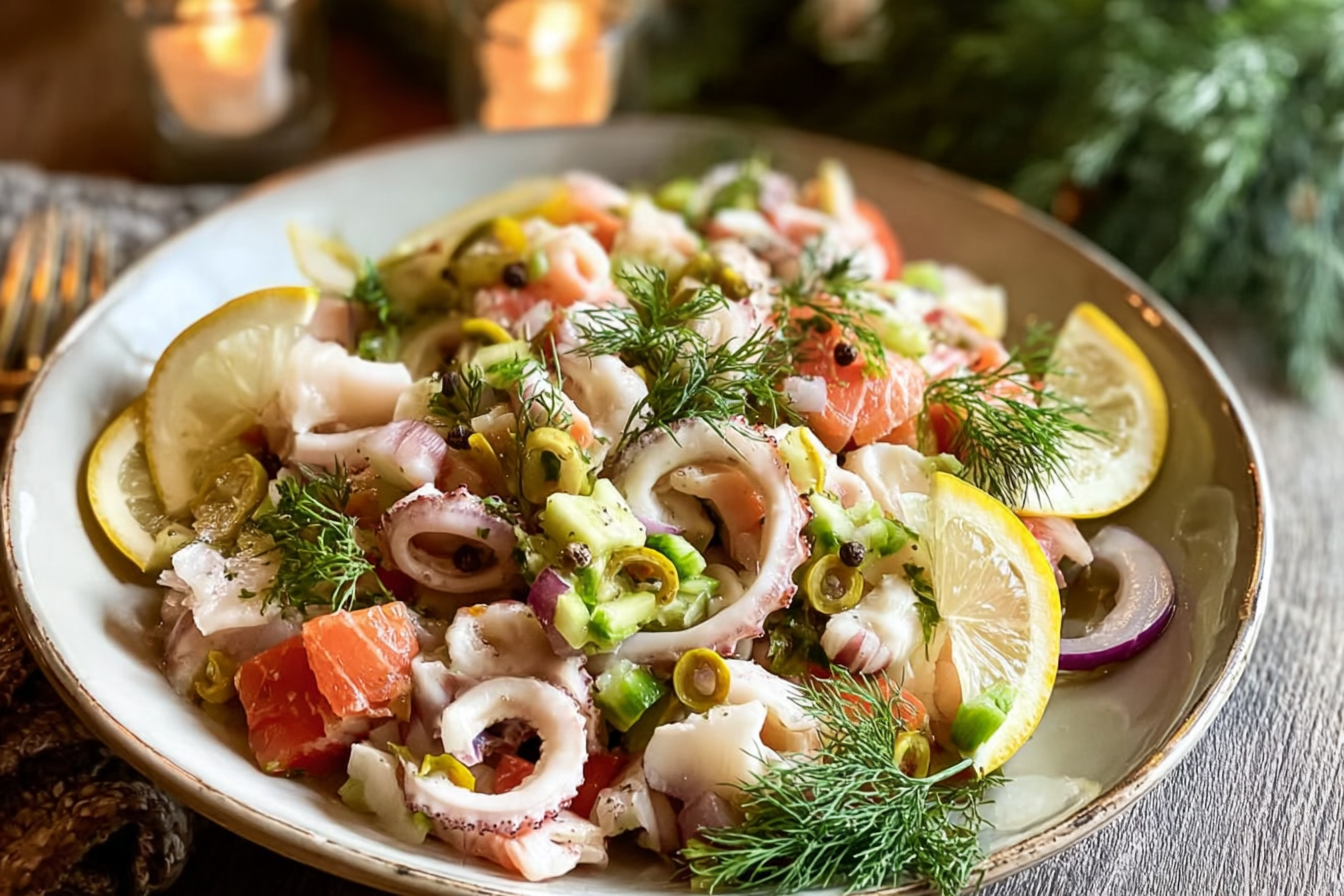 There is something magical about gathering around the table on Christmas Eve, the air fragrant with the sea breeze carried in by the bounty of the ocean. This salad isn’t just food, it’s a tradition, a celebration, and a story served on a platter. With a colorful mix of seafood, fresh herbs, and zesty citrus, the Seven Fishes Seafood Salad is a dish that feels as festive as it tastes. Each bite is a reminder of family gatherings, laughter, and the joy of sharing a meal that’s been passed down for generations.