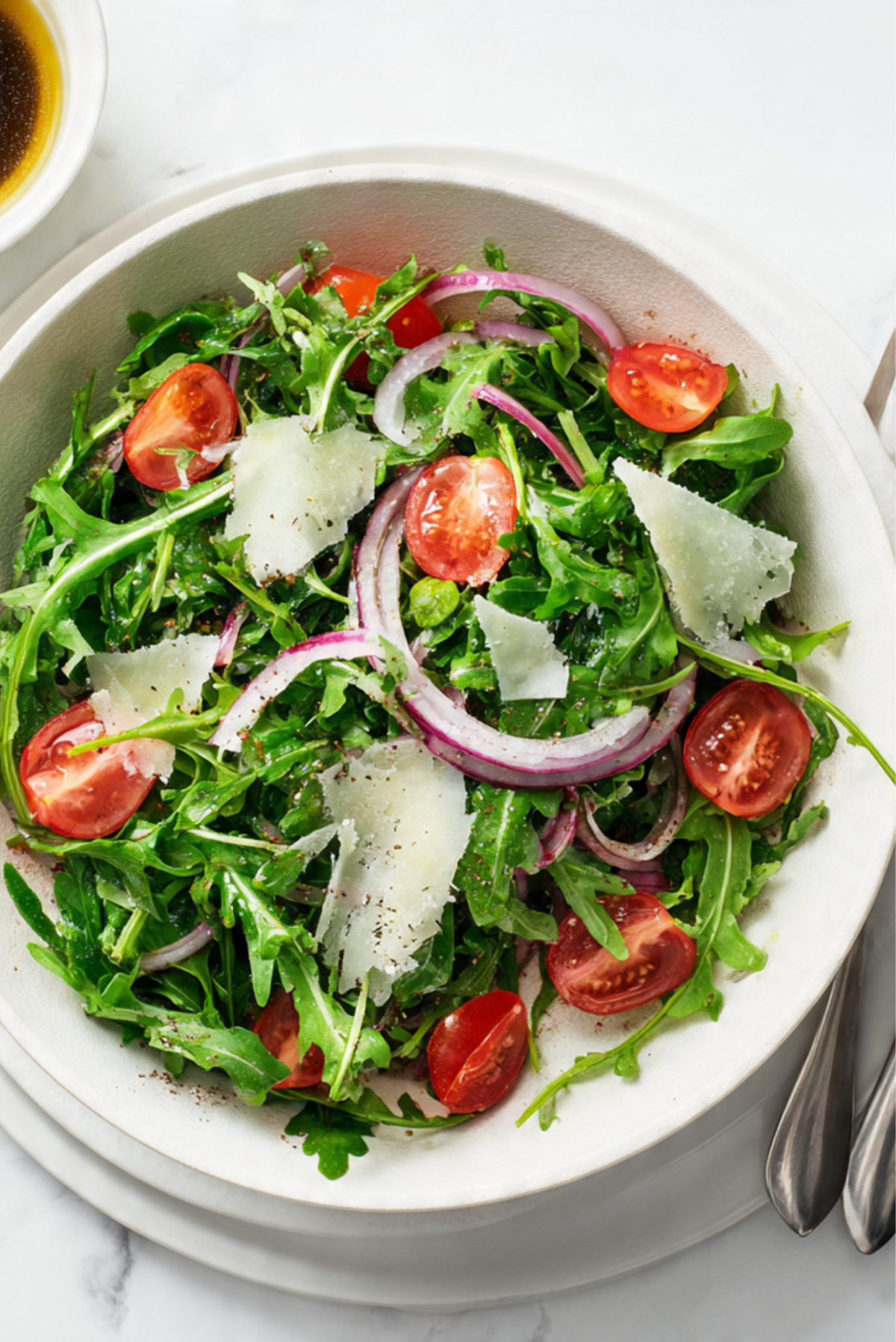 Balsamic Vinegar: Aged and slightly sweet, it enhances the natural bite of arugula and adds a rich depth to the dressing.