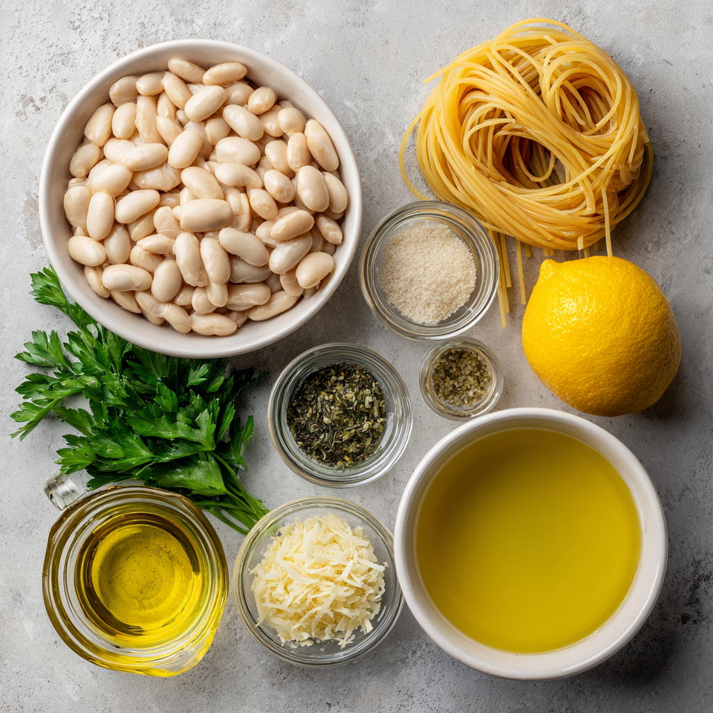 Ingredients in Simple Creamy White Bean and Lemon Pasta