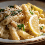 This Simple Creamy White Bean and Lemon Pasta is a comforting yet refreshing dish that combines silky pureed white beans with zesty lemon for a luscious, dairy-free sauce. Perfect for quick weeknight dinners, it’s light, flavorful, and satisfying.