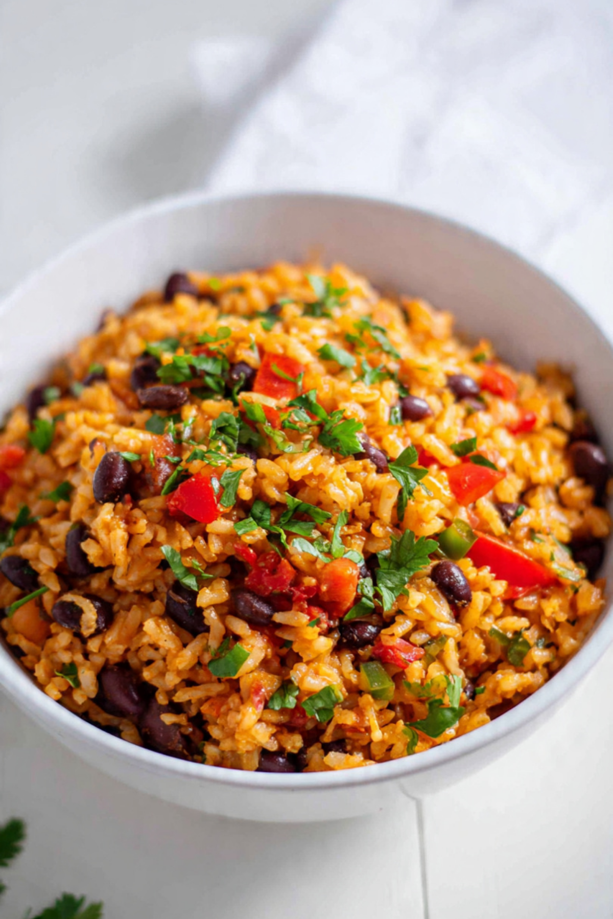 As it cooks, the rice absorbs the tomato broth, becoming tender yet separate. The beans stay creamy, offering contrast to the fluffy grains. The peppers soften but still hold a slight bite, adding brightness. The spices gently bloom, creating warmth without overpowering. Every spoonful feels balanced and layered.