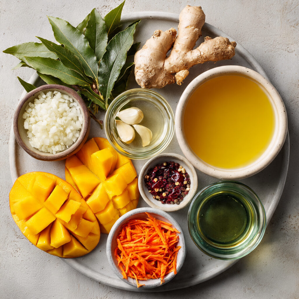 This dish is all about balance, blending the sweetness of mango with warmth from spices and freshness from herbs. Here’s what you’ll need: