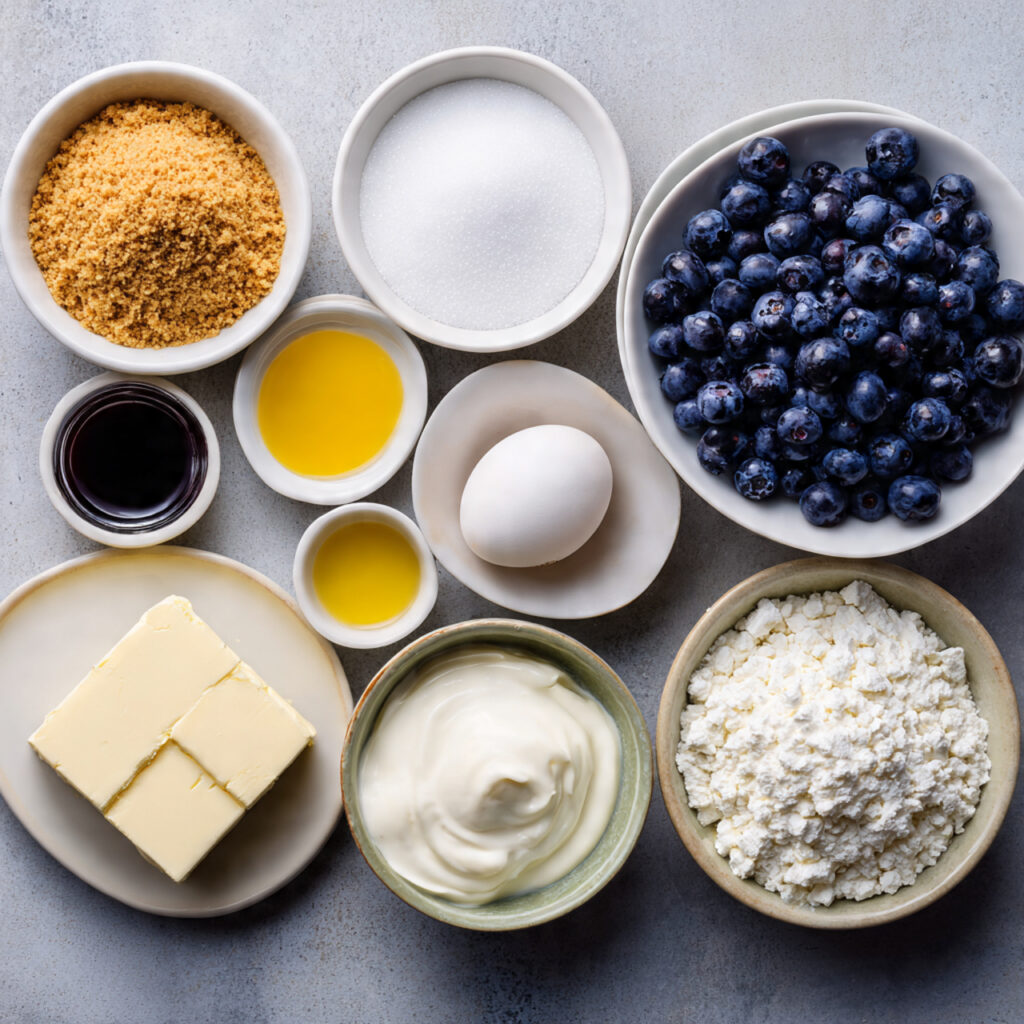 - Lemon Juice: 1 tbsp – Brightens the blueberry topping and balances sweetness.
