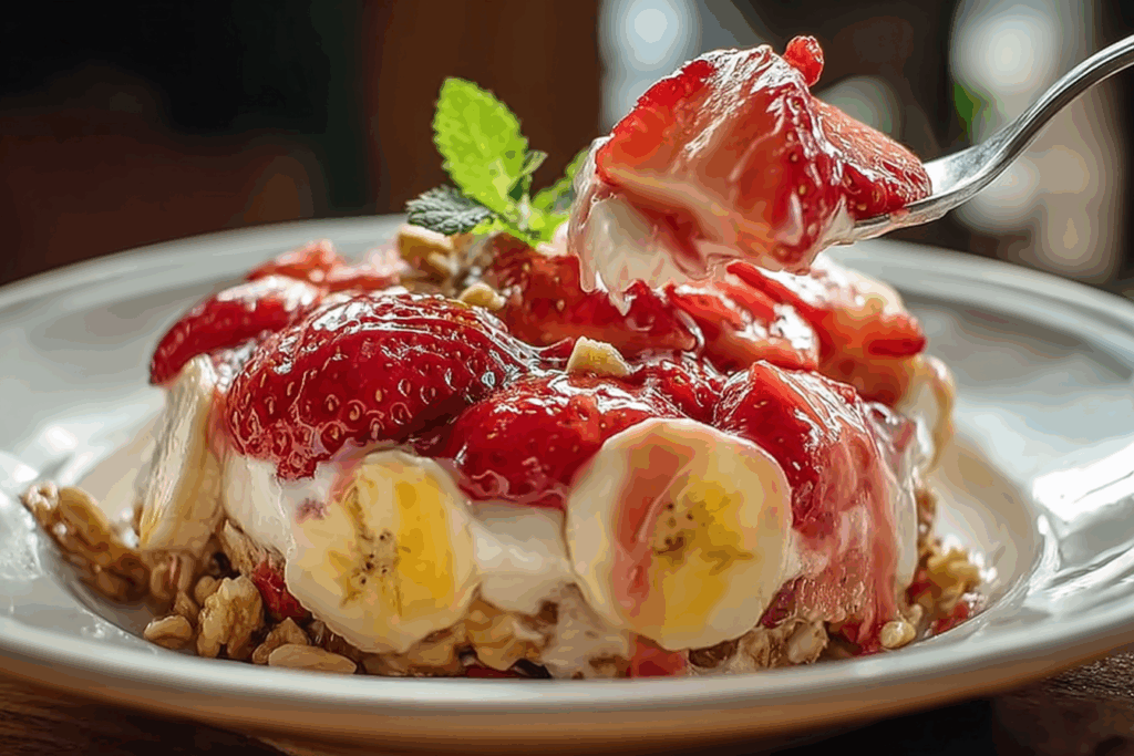 This dessert has a little story. I first made it one summer afternoon when I had ripe bananas and fresh strawberries begging to be used before they softened too much. What started as an improvised kitchen experiment turned into a family favorite. It’s creamy, colorful, and takes almost no time at all to make. Every spoonful feels like a mix of sunshine and sweetness.
