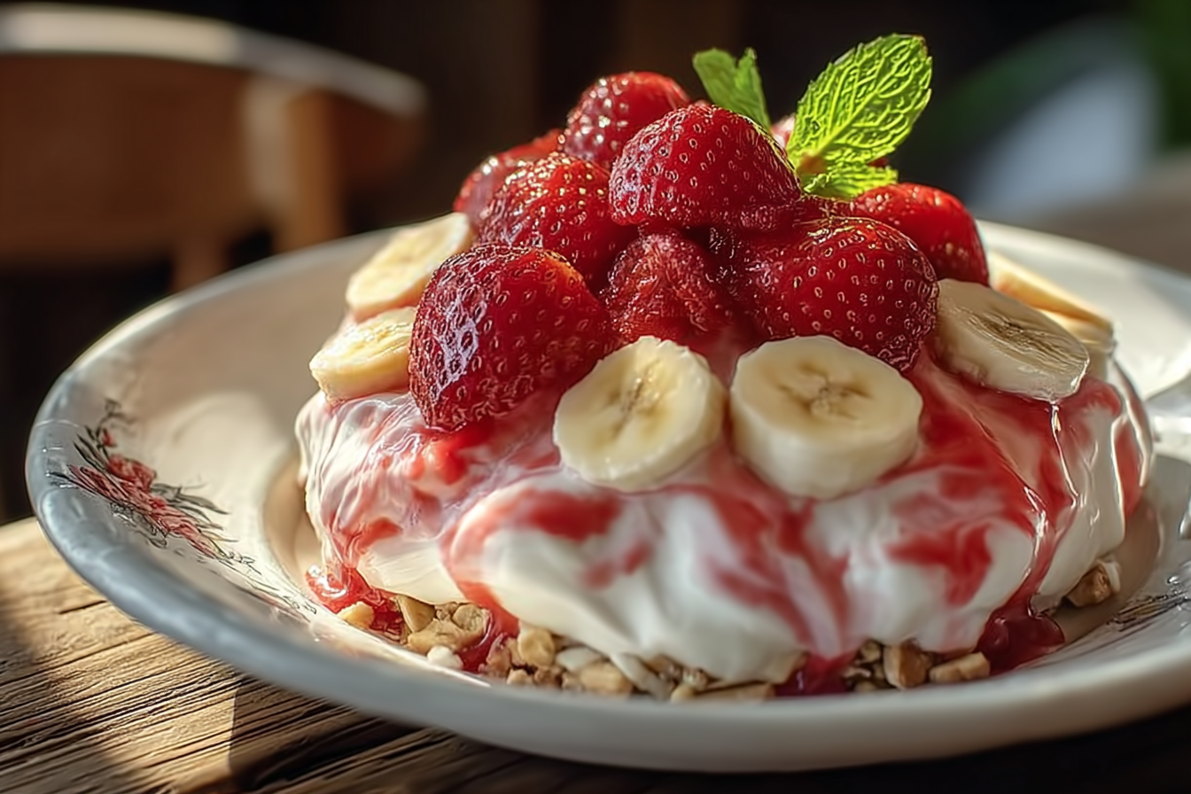 This dessert has a little story. I first made it one summer afternoon when I had ripe bananas and fresh strawberries begging to be used before they softened too much. What started as an improvised kitchen experiment turned into a family favorite. It’s creamy, colorful, and takes almost no time at all to make. Every spoonful feels like a mix of sunshine and sweetness.