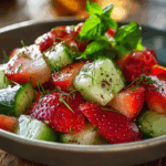 A refreshing Strawberry Cucumber Salad that combines sweet strawberries, crisp cucumbers, tangy feta, and fresh mint with a zesty honey-lime dressing. Perfect for summer gatherings or a light, colorful side dish.