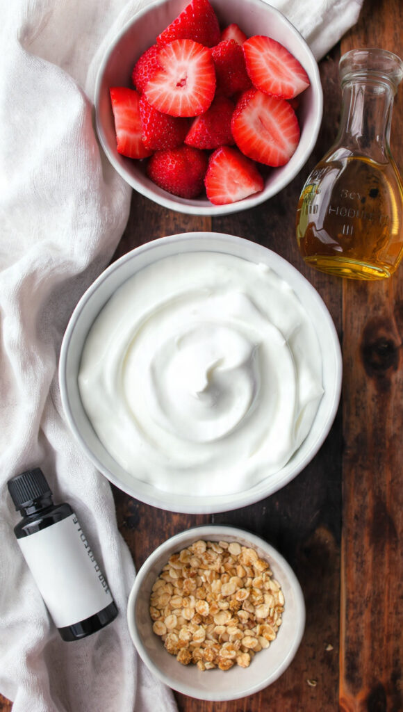 Strawberries: Fresh, ripe strawberries bring natural sweetness and a slight tang that balances the creamy yogurt beautifully.