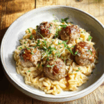 Think of tender, flavorful meatballs swimming in a silky, savory sauce, paired with orzo pasta that’s absorbed every last drop of goodness. This dish is warm, homey, and surprisingly simple — perfect for a weeknight dinner that feels like a hug on a plate.