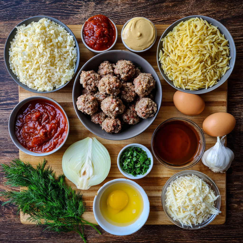 (Ingredients adapted from classic one‑pot meatball‑orzo recipes) :contentReference[oaicite:2]{index=2}